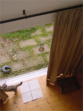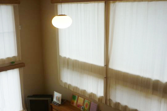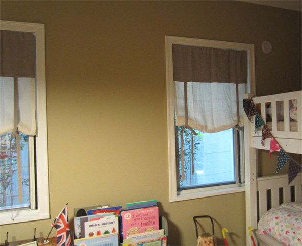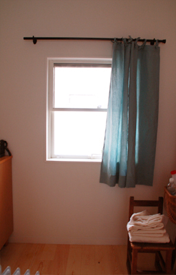 小窓のカーテンは、テンションポール(突っ張り棒タイプ)のカーテンポールを カーテンの上部を袋状にして通しております。