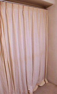 京都の古い小さな町家の玄関に暖簾代わりのカーテンをつくりました。(フック部分芯地無し)