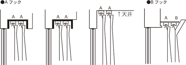 Aフックですが、天井に勾配があるので、見え方は、Bフックの感じです。