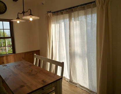 アンティークリネンのドレスのようなイメージのカーテンです。
