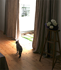 リネットのお取り扱い生地で、 オーダーカーテンをお作りいたします。一番のお勧めは、やはり、リネンファブリックで作ったカーテンです。 無地のプレーンなカーテンでも、生地のニュアンスがあって美しいです。是非お試しください。