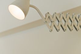 ブラケットはブロンズタイプ 真っ白い部屋のワンポイントに、クラシックポースレインブルーでコーディネートしました。