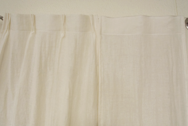 納品時、縫製直後のカーテンは、少し張りがある感じがする時があります。その時は、軽くお洗濯をして頂く事で、ナチュラルな感じがでてきます。また、使い込んで頂く程に柔らかな感じになります。