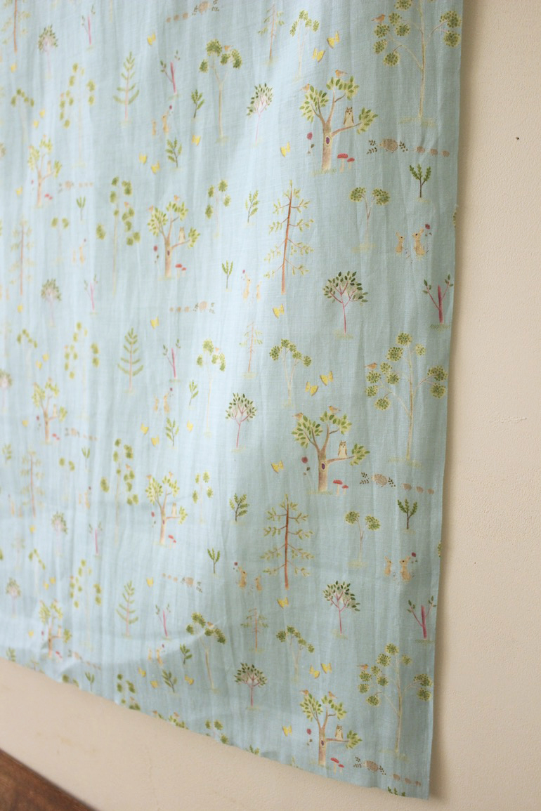 木々と小動物がモチーフがリネンプリントです。愛らしいくて、スッキリとした柄です。