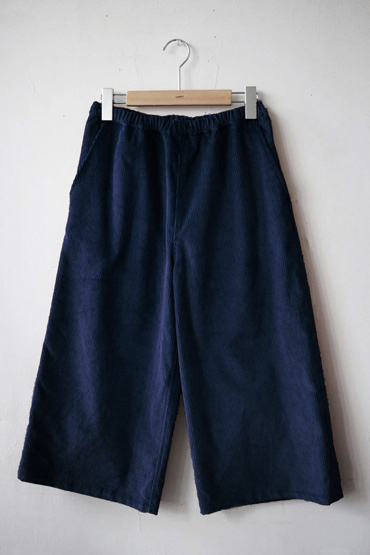 ダブル巾の太うねのコール天です。ジャケット、ワンピース、パンツや、スカート、バッグやクッション、雑貨などにもお勧め。シャツコールではないので、生地厚もしっかりめ。単価は高くみえますが、ダブル巾ですので、No.47の七分丈パンツですとS~Lまで1mで、新しいN0.125ポケット付き七分丈パンツですと1.7mでお作りいただけます。うねピッチは実寸で3mm位です。シックで使いやすいネイビーブルーです。光によって、青みが強く見える場合もあります。