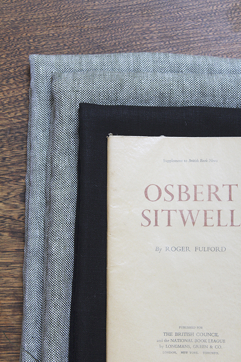 アンソレイエシリーズの、リネンオックスとヘリンボーンファブリックです。オックスは縦糸(たていと)、横糸(よこいと)2本の引き揃えで織っています。