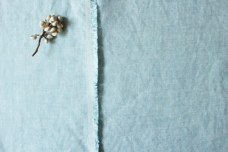 縦横の糸目も拾いやすく、クロスステッチなど刺繍にもたいへんおすすめです。生地幅は、OXオックス、HBヘリンボーンともダブル幅(155cm~158cm)で織っております。国内で染めた上質なリネン糸を使い、日本で織ったものです。