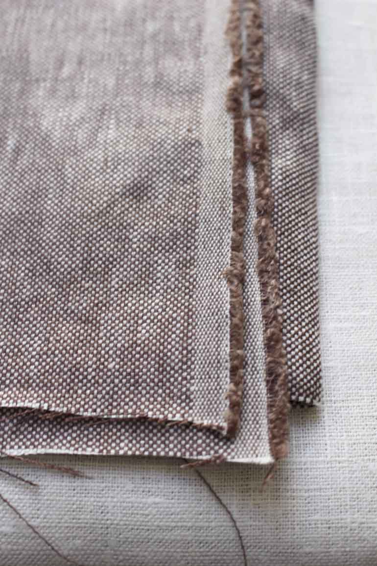生地厚はどちらも、LINNETfabのシリーズよりも少し厚く(糸が太め)、カーテン、テーブルリネン、シーツ、キッチンタオルなどの雑貨からブラウスやスカート、ワンピース、パンツまで幅広い汎用性のあるリネンです。色は縦糸オフホワイト横糸はマロンブラウン。