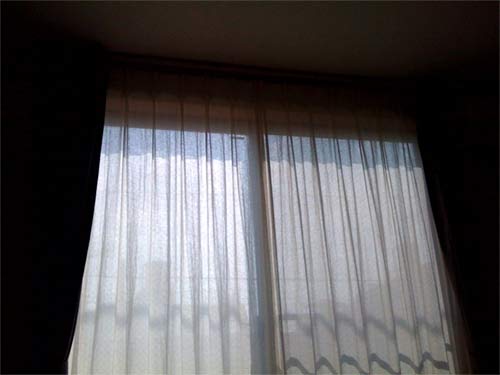 大きなカーテンの架け替えは2人でやる事をお勧めいたします。