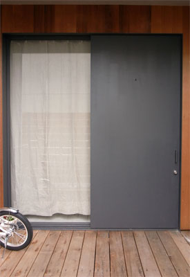 京都の古い小さな町家の玄関に暖簾代わりのカーテンをつくりました。(フック部分芯地無し)
