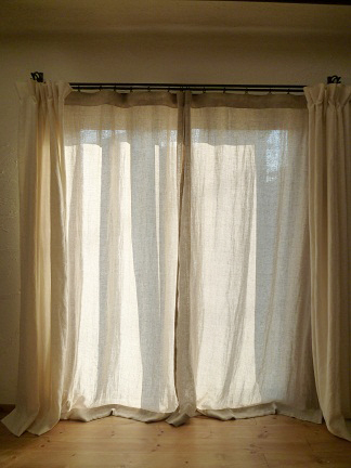 リネットのお取り扱い生地で、 オーダーカーテンをお作りいたします。一番のお勧めは、やはり、リネンファブリックで作ったカーテンです。 無地のプレーンなカーテンでも、生地のニュアンスがあって美しいです。是非お試しください。