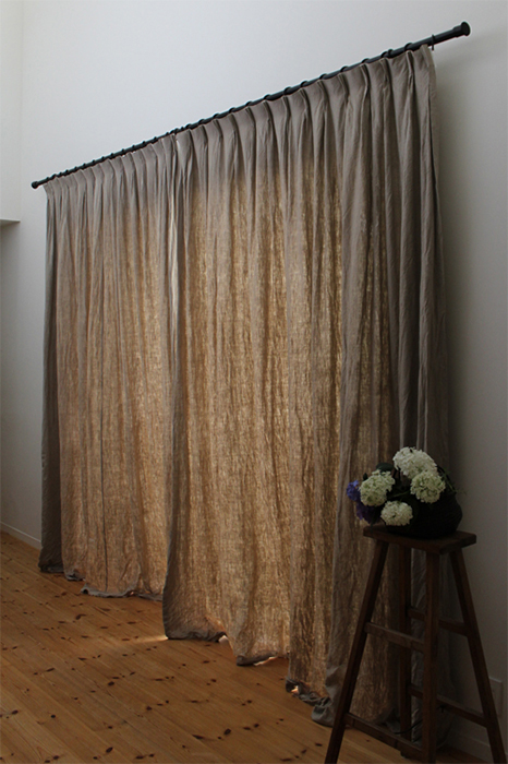 洗いをかけて風合いが増すアンソレイエフラックスのカーテン。