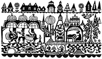 ハーブティーにまつわる、風景を描いた、フワーっと生命感が溢れている柄です。ティーカップや、ポット、ハーブや猫たち、ハーフを摘む人と入れる人。咲き乱れる、花々。