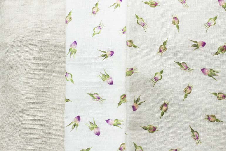 ローズをモチーフとしたリネンプリントです。1つの花柄は1cm強で、お洋服から、雑貨まで幅広く使いやすいデザインにしました。色合いは大人が使っても甘すぎないリネンの生成りにダークな美しい紫色です。