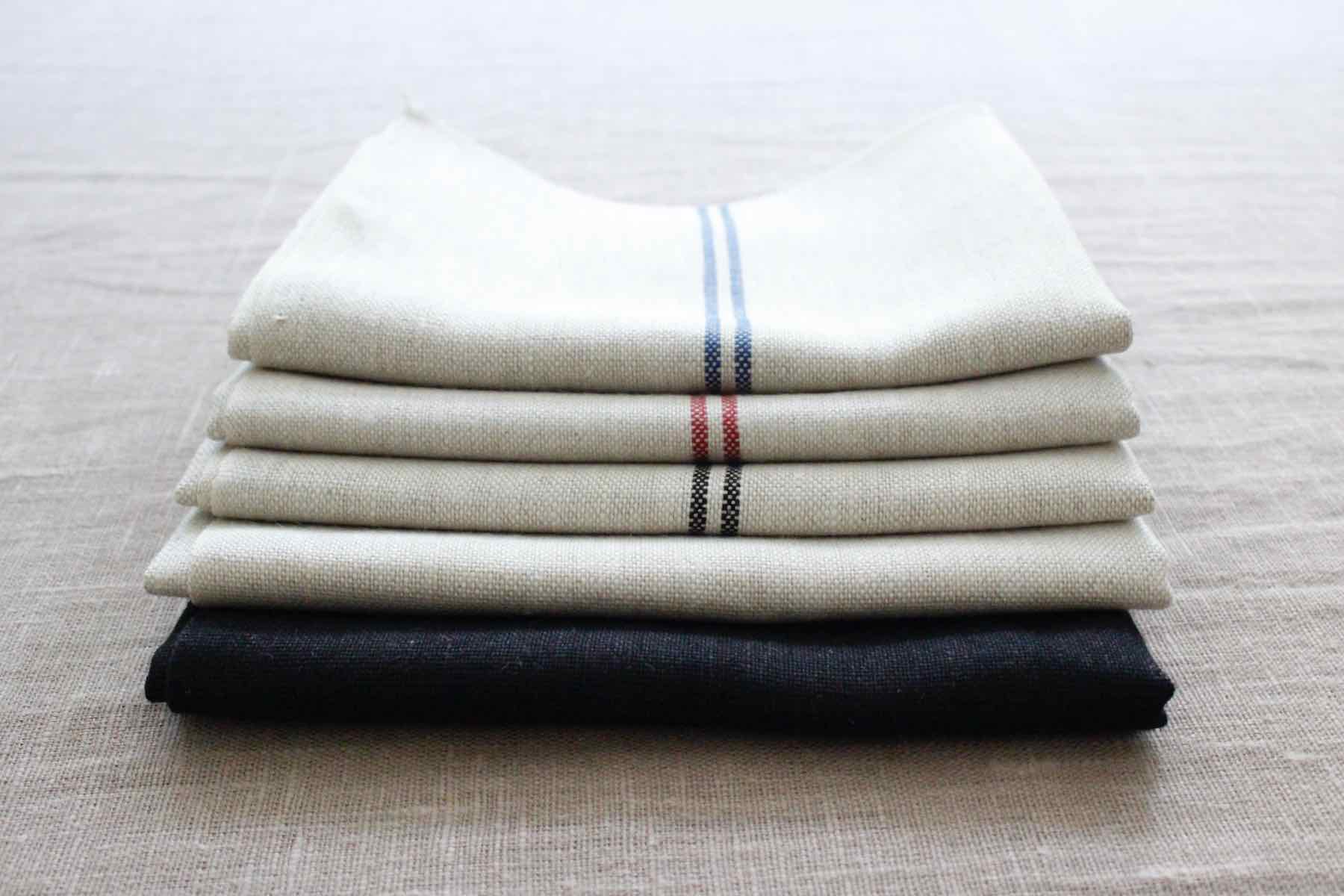 LINNETオリジナルのタオルクロスです。フランスのアンティークを参考に、ごくベーシックなやや細めの2本ラインが両側についているデザインです。イタリアとハンガリー製の糸を使い、国内で織っていただきました。ほどよい厚みがあって、クオリティの高い仕上がり感です。